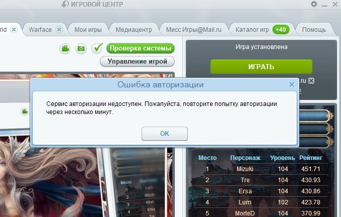 Может быть, кто-то шарит в чем проблема? Ибо я точно знаю что мои знакомые и вчера и сегодня играли и играют без проблем. Мб теперь не зайти тем у кого почта не на мейле? Это было бы очень печально и вряд ли такое могли сотворить. Никакие перезагрузки компа, скачивание зАново ИЦ и даже клиента не помогают, с компом все в порядке. Хотелось бы получить ответ на форуме ибо в саппорт обращаться дело неблагодарное по понятным причинам.