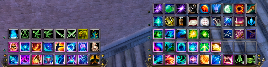чтобы не путать, какие именно сферы нужны для скиллов +20% (?) дамага при одинаковых сферах, вынес их вот так. 1 - скилл, дающий сферу, ф1 - требующий 3 сферы такого цвета для доп дамага. аналогично 2 - ф2. на 6 и ф6 вынесены сравнительно редко используемые скиллы ближних аое. 3 и ф3 - станы. на 5 макрос для пве, сменяющийся кнопкой ассиста во время пвп. ну и на Q E C V забиндил важные для меня скиллы.