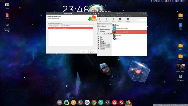 Установку и настройку программ Wine и PlayOnLinux я описывать тут не буду, в интернете есть подробные статьи.