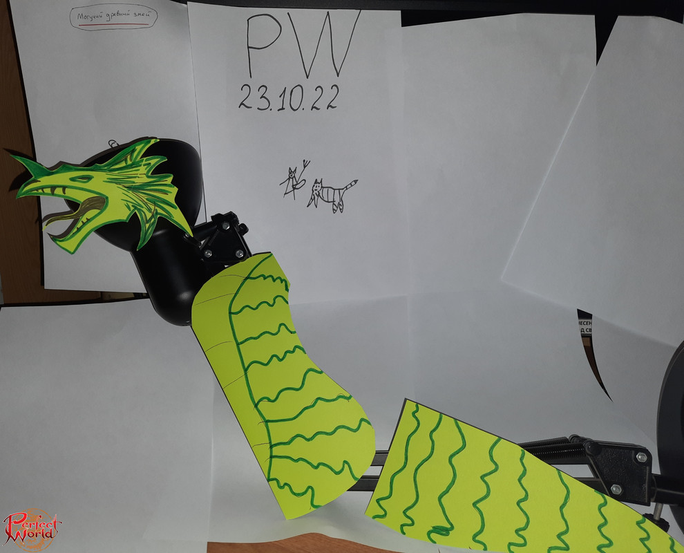 - 1-е место — 450 золотых, коврик для мыши и блокнот в твердой обложке с символикой Perfect World;