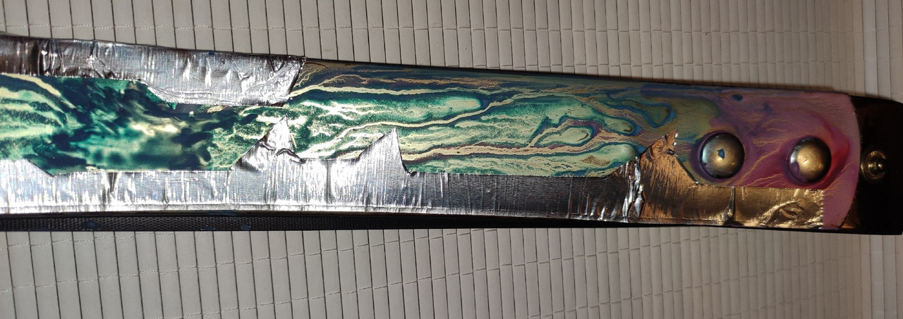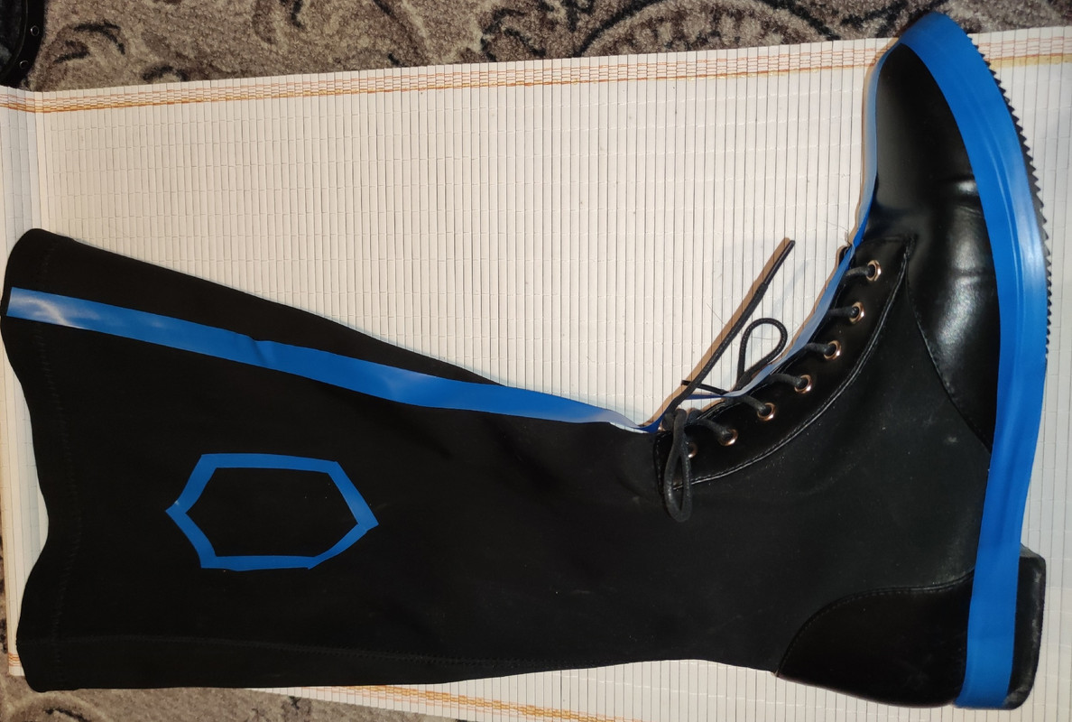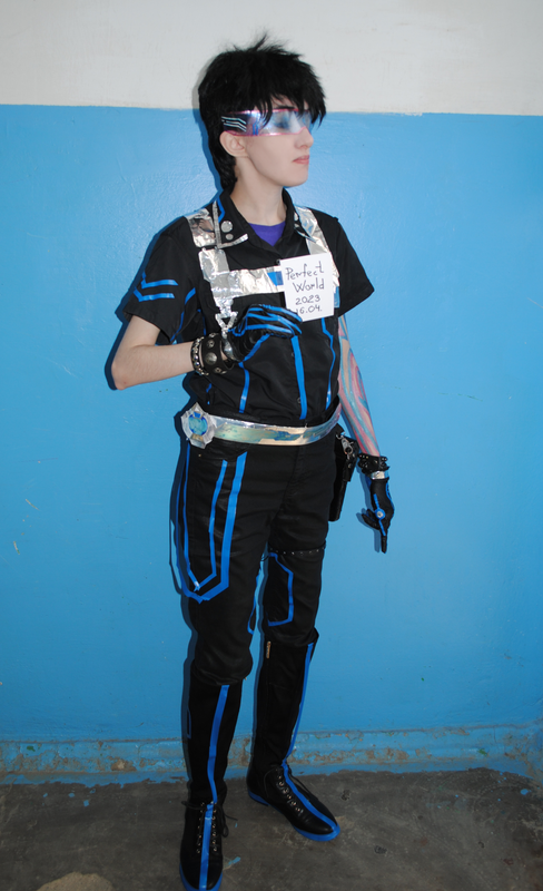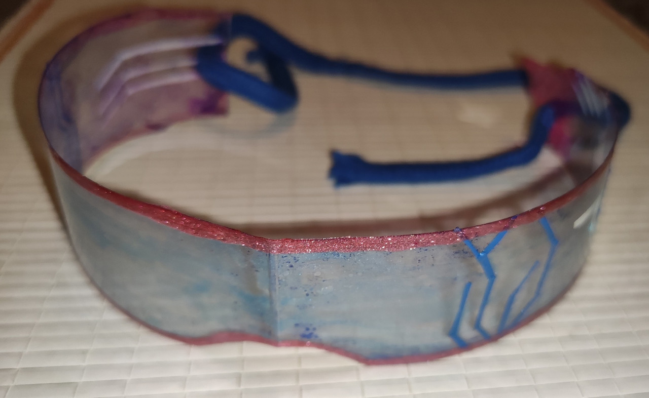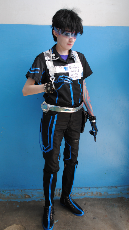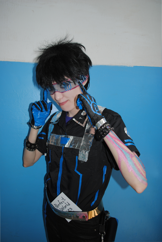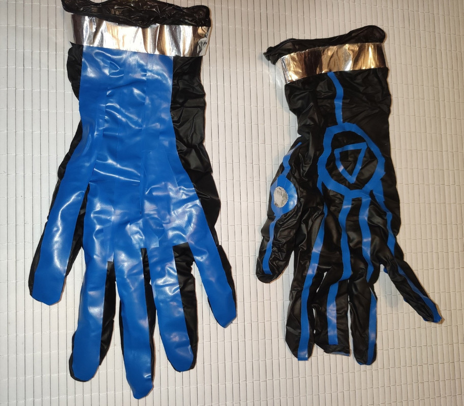У нас было 10 метров синей изоленты, 2 метра металлического скотча, черные медицинские перчатки, ранее золотой пояс, и целая куча различной гуаши.