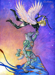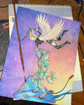 Акварельные карандаши Staedtler, набросок простым карандашом, формат А3. Три дня работы с редкими перерывами на сон, еду и отмазки от начальства))) В фотошопе только подправила уровни, дабы избавится от серой дымки, порождённой сканером)
