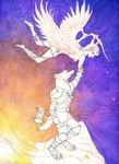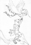 Костюм волка придуман мною, хотя и по мотивам костюмов игры. Но срисовавать не хотелось, даже не смотря на то, что в традиционный арт я не могла вфотошопить костюм из скриншота. Впрочем, костюм лучницы все равно срисован