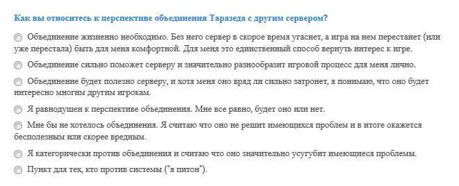 Итоги внутрикланового голосования гильдии =МИР=, посвященного перспективе объединения сервера Таразед с другим сервером