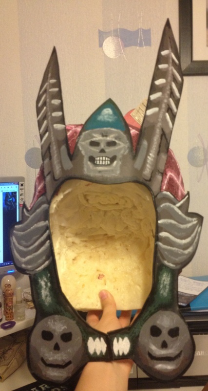 Сделала выкройку своей башки,натянула на банку,залила монтажкой,вырезала форму,спереди пришлепала ПВХ,покрасила.