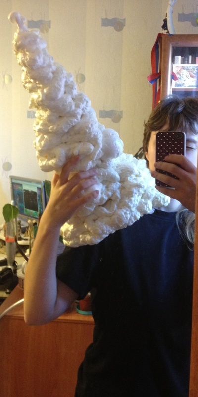 Свернула кусок ватмана в конус,поэтапно заливала сверху монтажкой,вырезала форму,выравняла неровности шпатлевкой, зашкурила, загрунтовала ПВА,покрас.