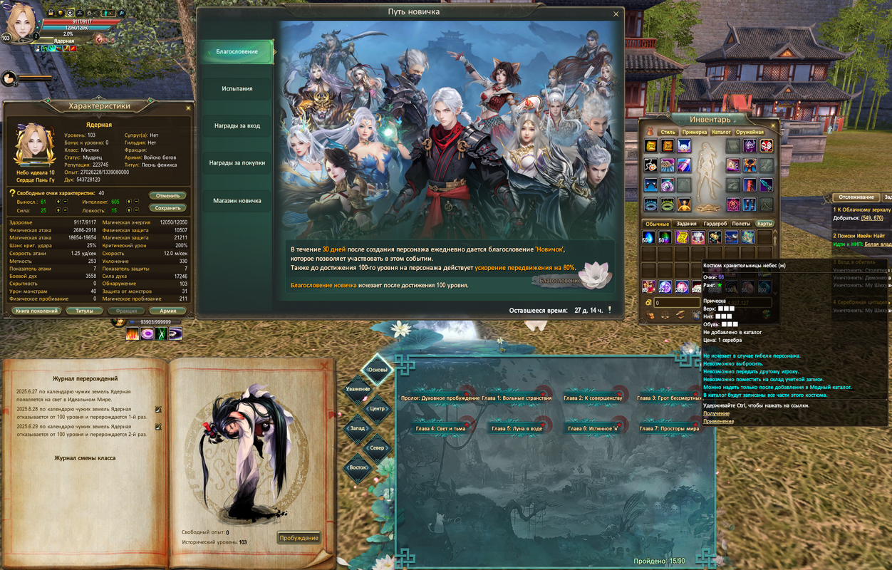 Результат данного обновления по части прокачки, в совокупности с обновлением бонусов нового аккаунта. 58 часов с момента создания персонажа. Без доната и помощи основы. Только халявные гиперы в УФ и квесты.