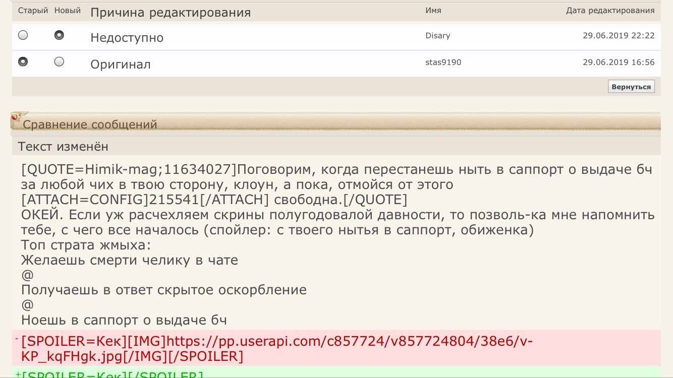 Больше тряси скрины полугодовалой давности, только не . Объяснять чето нет больше желания, бб.Последний раз редактировалось Disary; 01.07.2019 в 10:37.