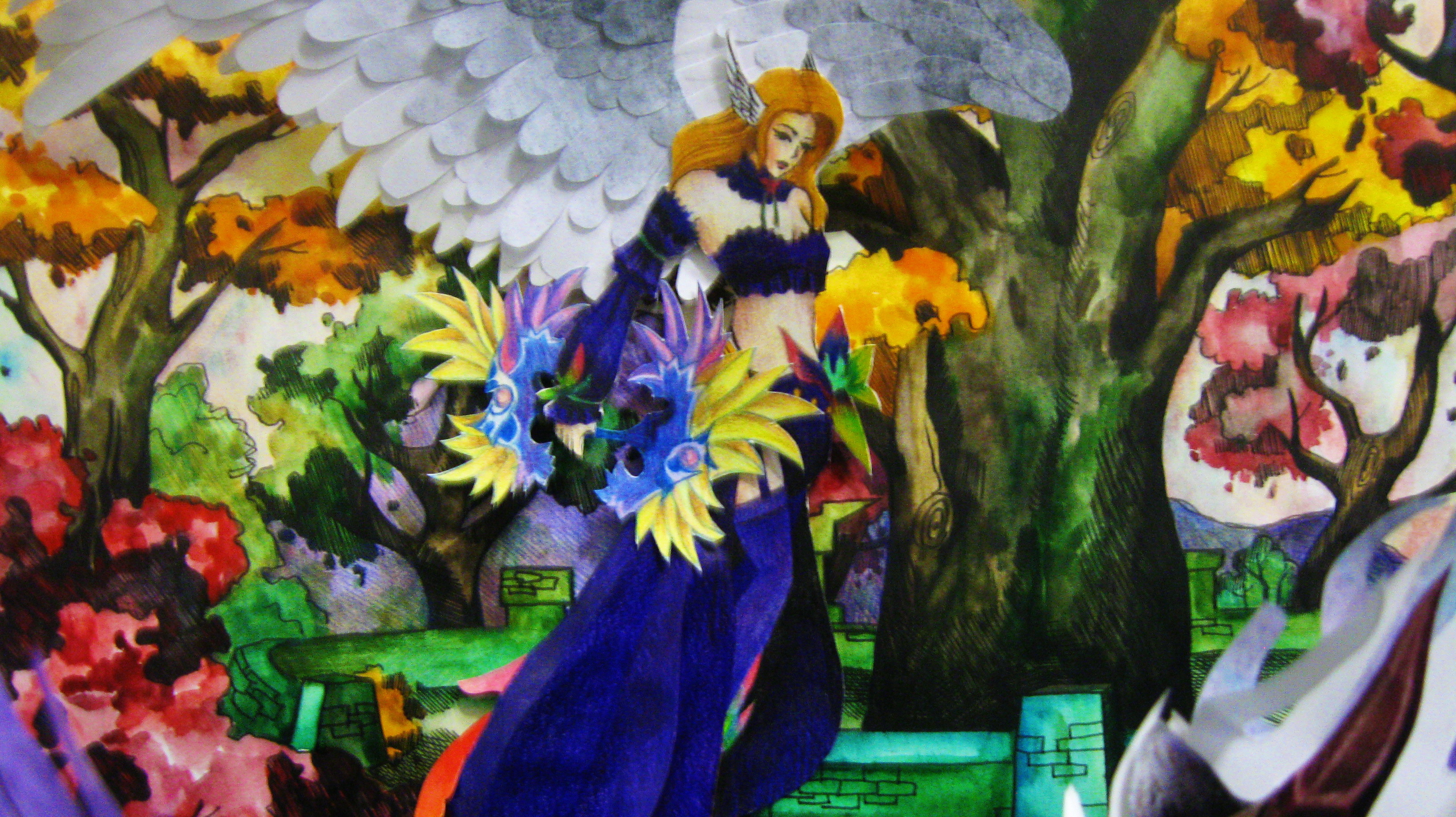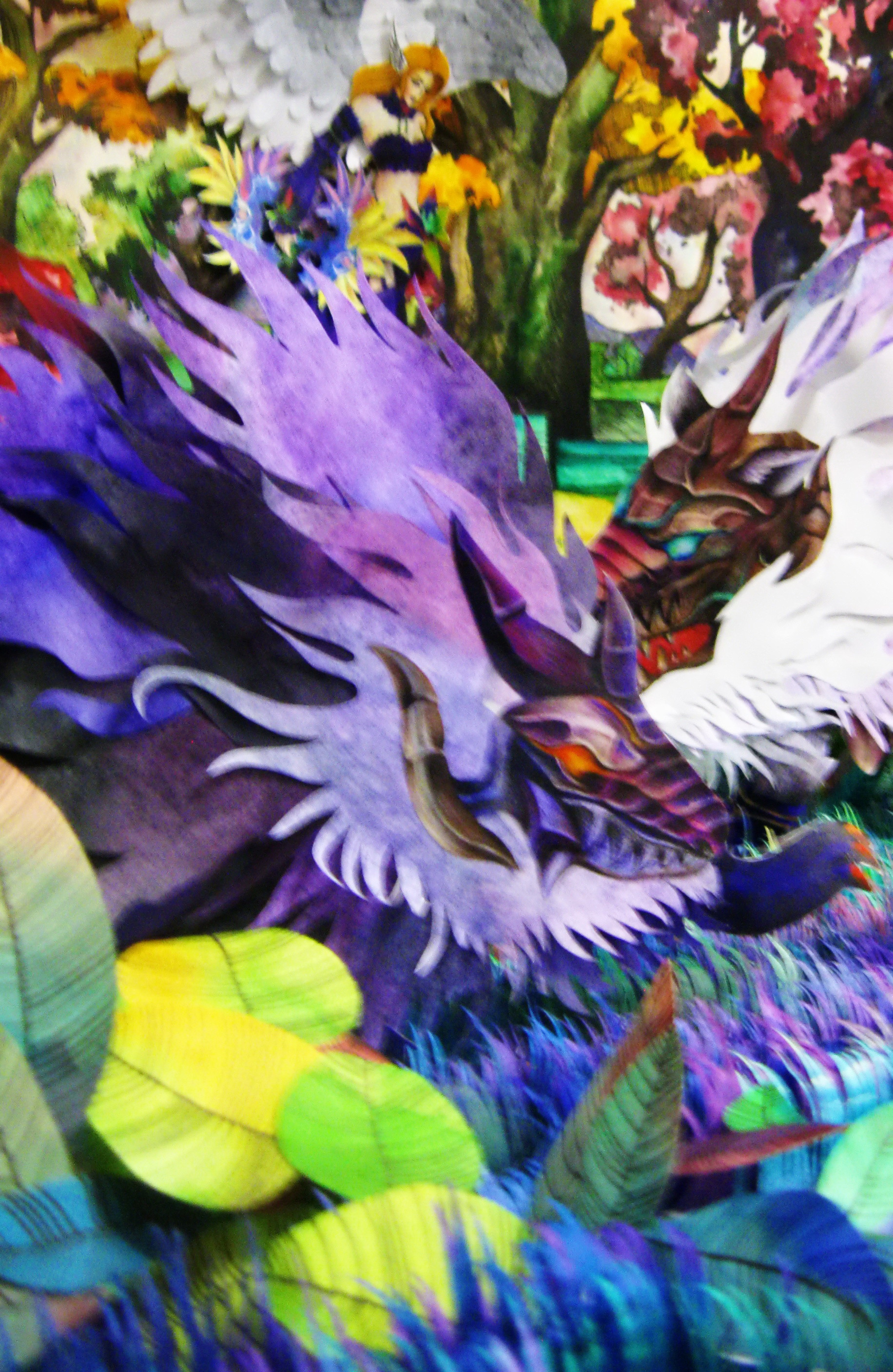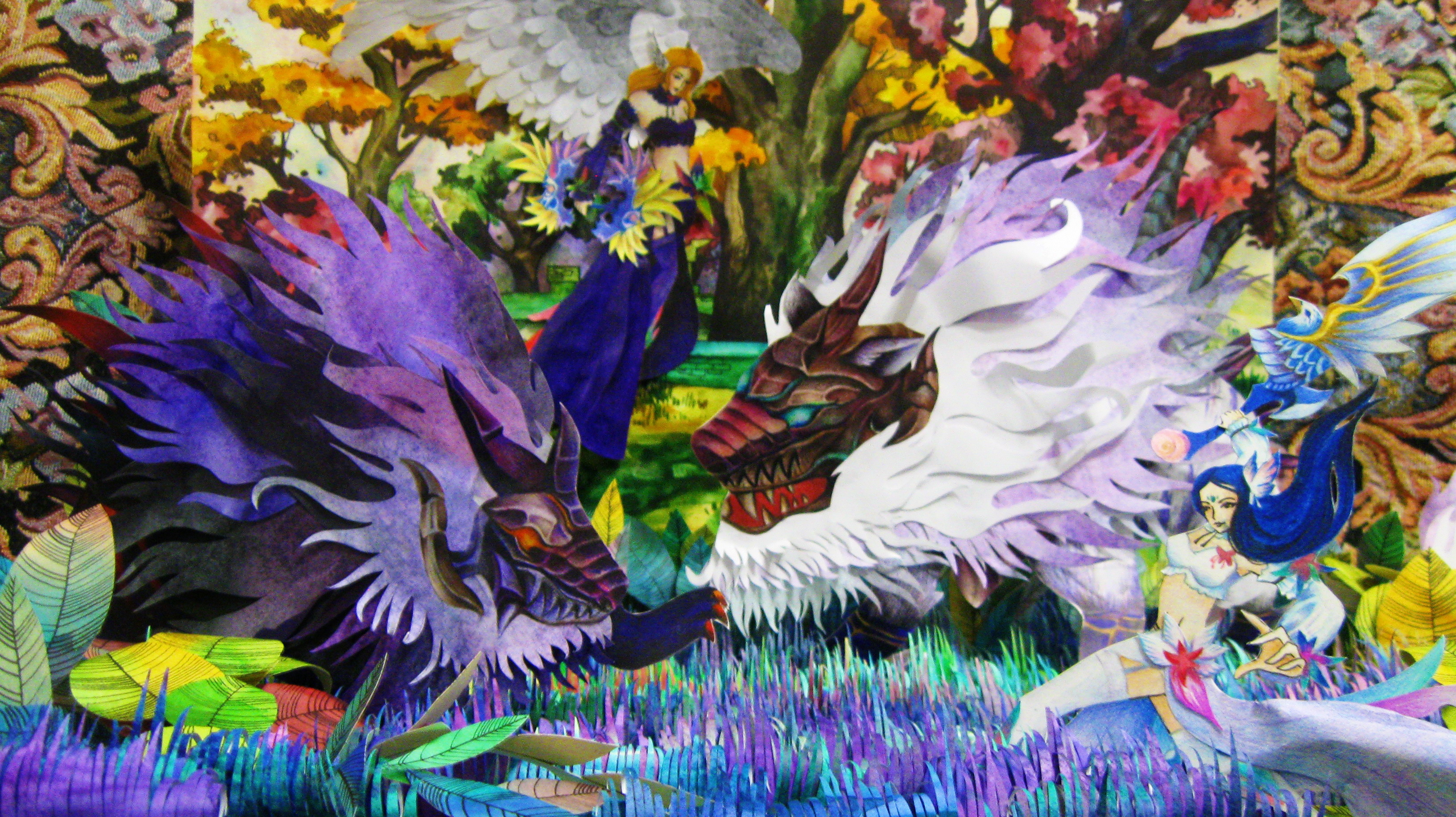Диорама "Полет скудной фантазии " - задумывалось сражение между Тигром-демоном и Тигром-небожителем,на стороне каждого "сообщники" в виде пристки и стража.Все делалось,точнее переделывалось за пару дней,благодаря одной вредной пушистой попе,которая решила поиграть бумажками