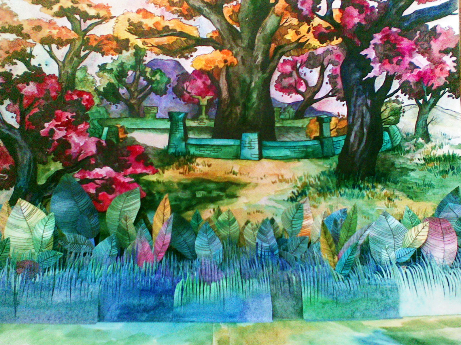 в итоге все восстанавливалось на скорую руку.Материалы: тучи выкрасок для травы и листьев,бумага,макетный картон,акварель,линер,акварельные карандаши.
