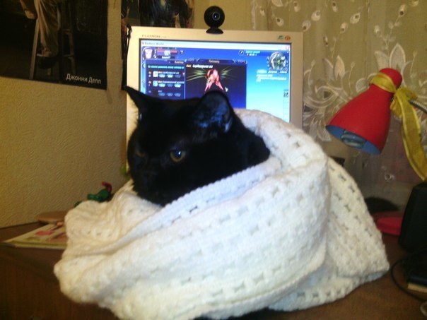 Приходит ко мне частенько за монитор ) поглядеть за курсором мышки, по-мурлыкать или просто что-нибудь в чате напечатать ))))))))) от чего становится только веселее общение в игре ))))) очень понимающая и разговорчивая... порой жалуешься ей "эхх... опять на кукловоде убили...", посмотришь на нее грустно, а она в ответ мяукнет и такой взгляд сделает "нубаськи вы, чего его бить то?!" ))))))))))))))))))))))))