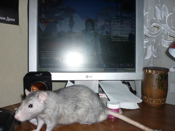 А вот и моя компьютерная мышь-Яшка. Он любит стучать по клавишам клавиатуры и отправлять моим со-кланам сообщения. Серенький милашка!*