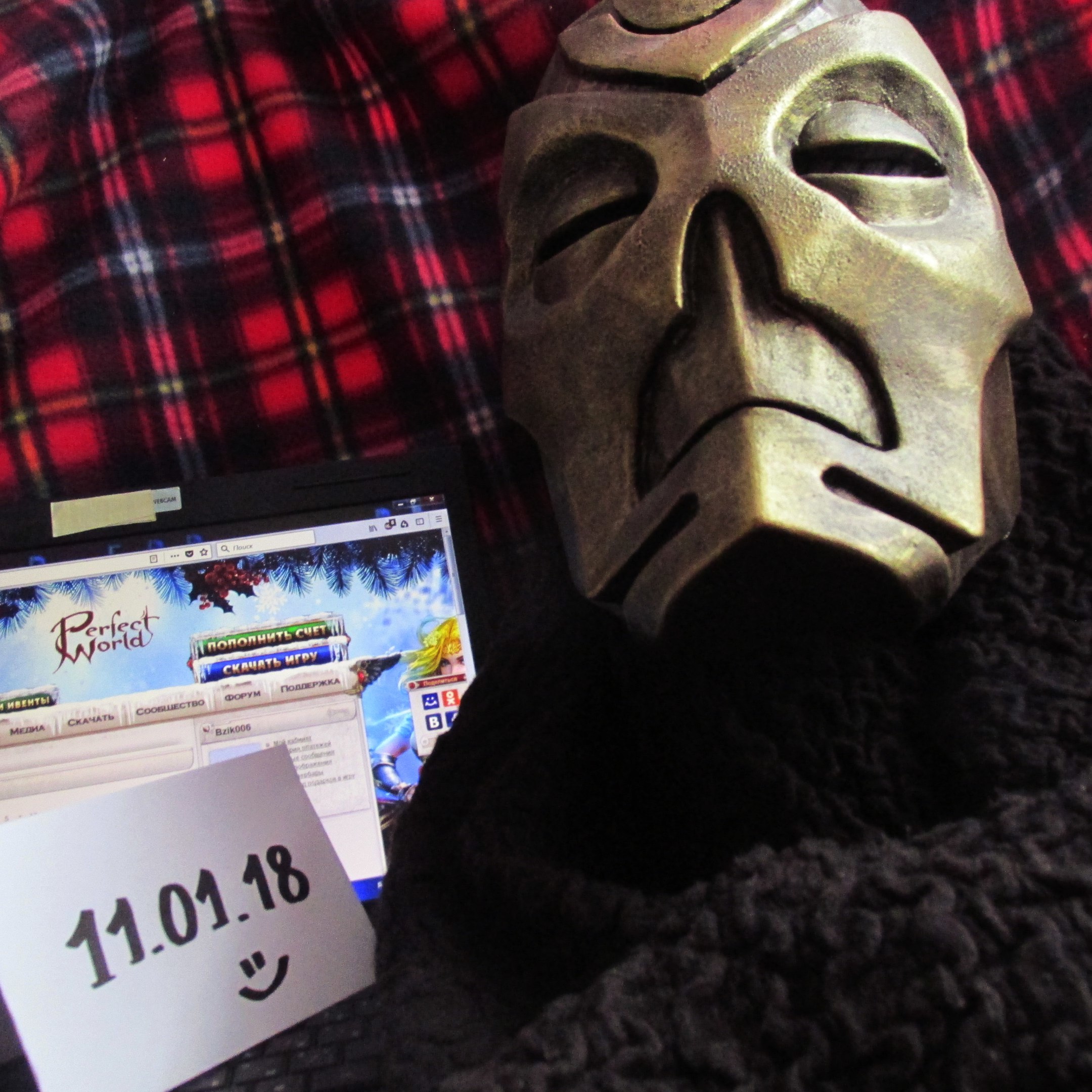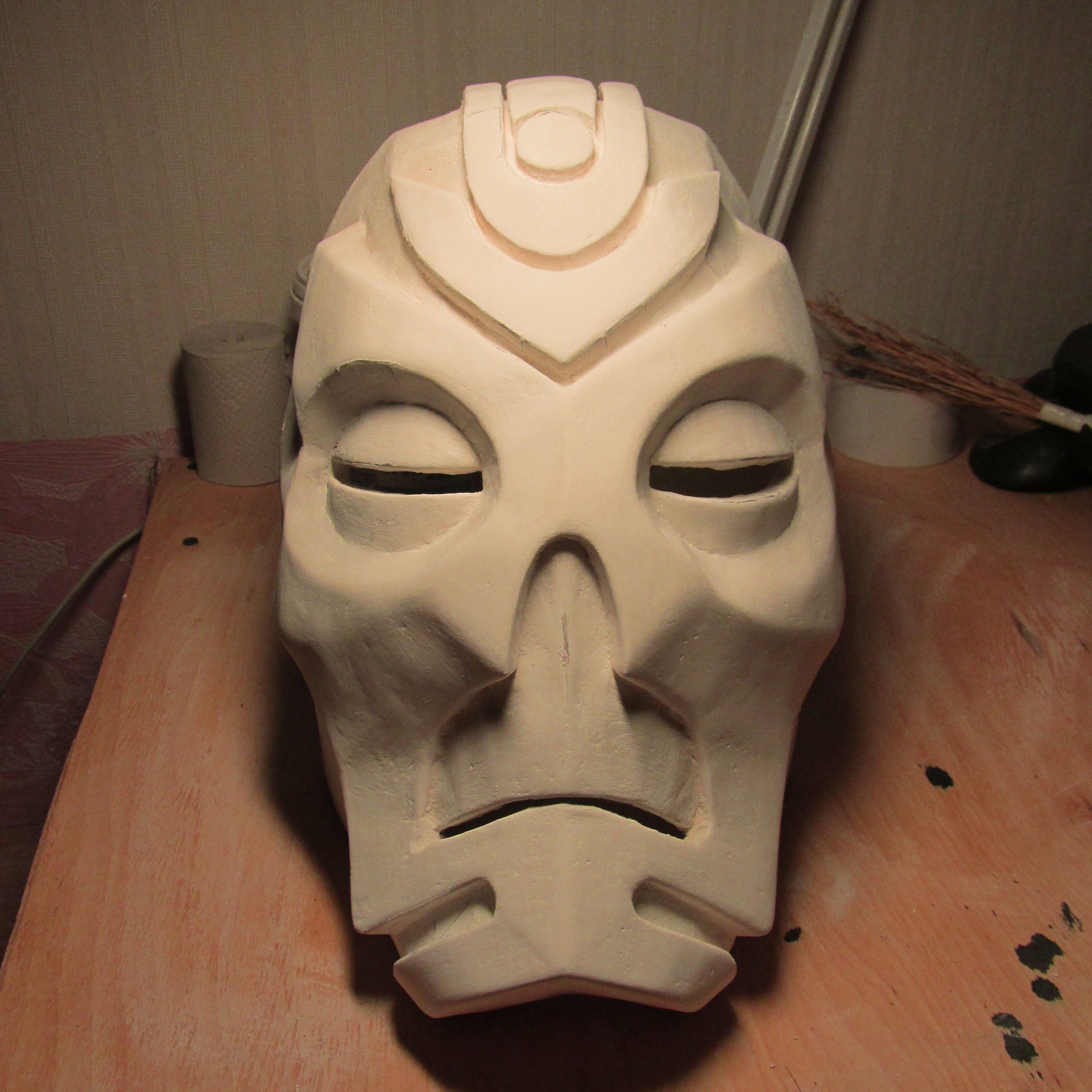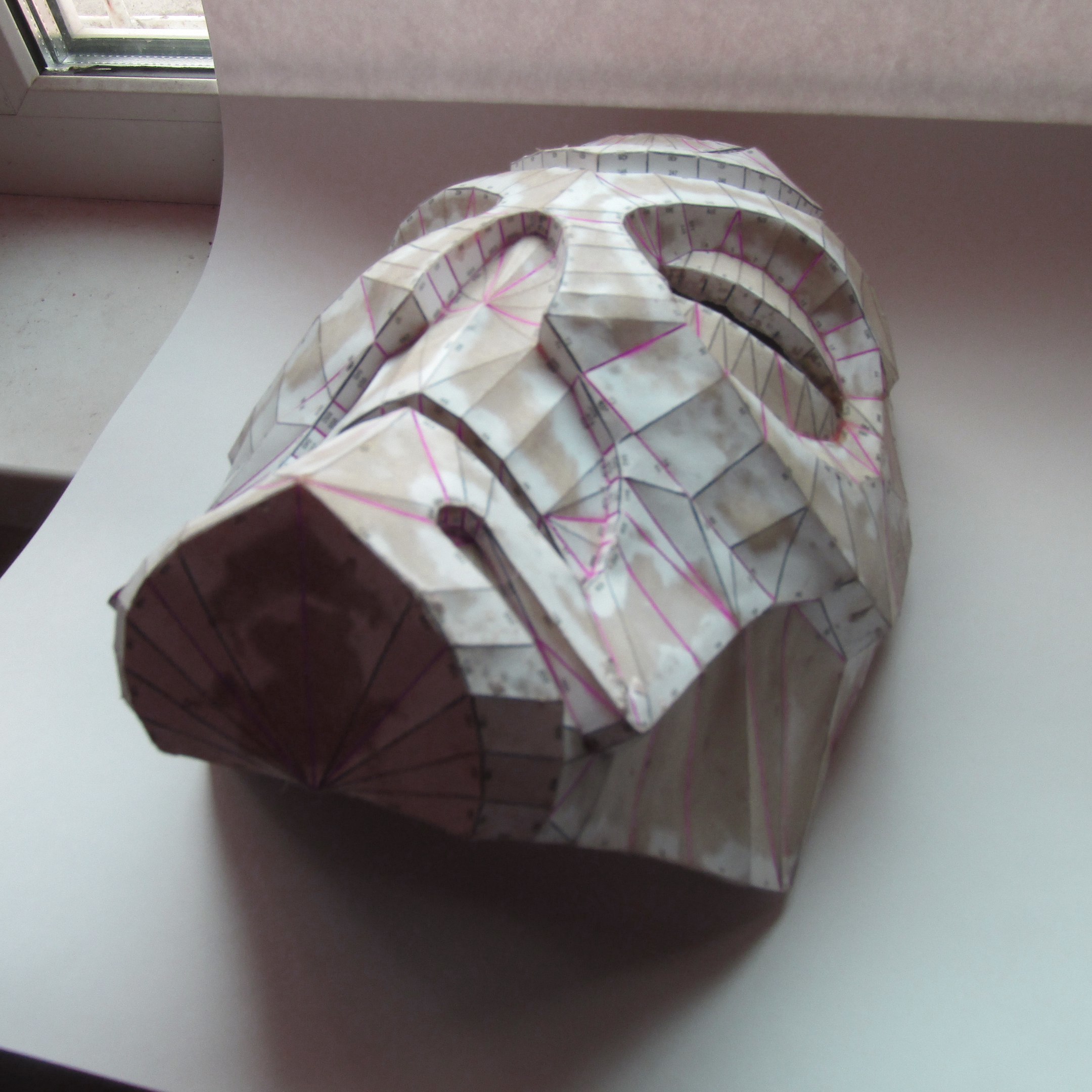Маска Жреца драконов сделана на основе бумажной развертки, укреплена эпоксидной смолой, доработана папьше-маше и шпаклевкой, покрашена акриловыми красками)