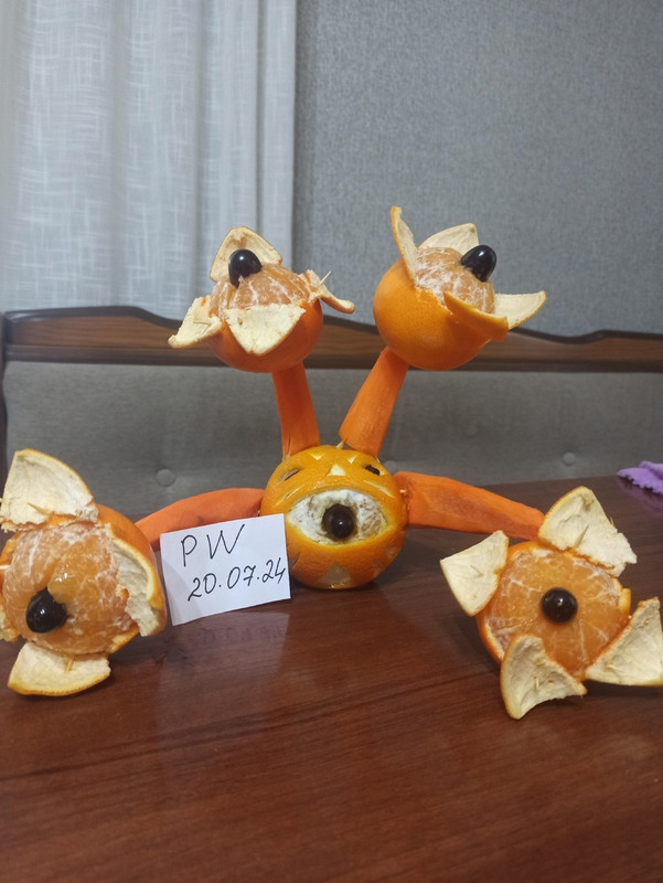 Работа усложнялась материалами (апельсин, мандарины и морковь и много зубочисток), так как в процессе работы фрукты размокали и теряли форму, вот уж действительно сложный босс)Последний раз редактировалось druiddiona05; 20.07.2024 в 14:35.