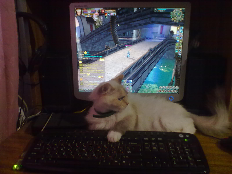 Её зовут Мики, она очень любит Perfect World настолько что порой приходит и нагло стоит перед монитором или ложиться на клавиатуру или же когда я начинаю писать в чат она начинает бить лапой по пальцам, как будто говорит "не флуди в чат"). Но самое прикольное это то когда она валяется перед монитором и взглядом ловит мимо проходивших или пролетающих, правда сейчас она уже не ложиться из за того что приходится ее выгонять иначе она начитает лапой бить по монитору а точнее по этим самым мимо проходящим, может она этим говорит "слей его!"
