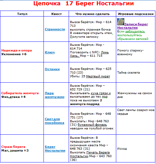 Цепочка Берег Ностальгии