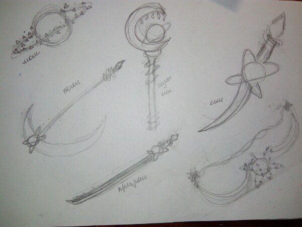 Раз уж начала, нужно добить наброски) Решила все же раскрасить меч, плюс доделала кастет и молот.