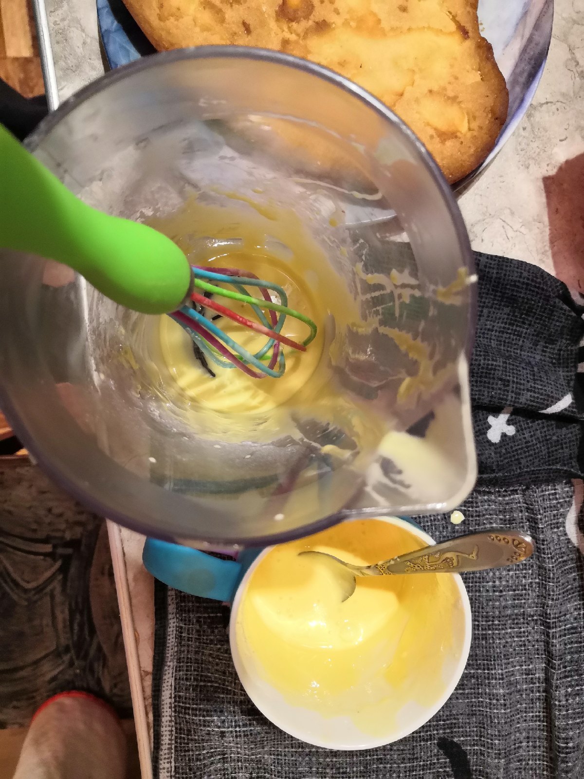желтки растираем венчиком с сахаром до белого цвета, можно миксером на маленькой мощности, чтобы сахар полностью растворился.