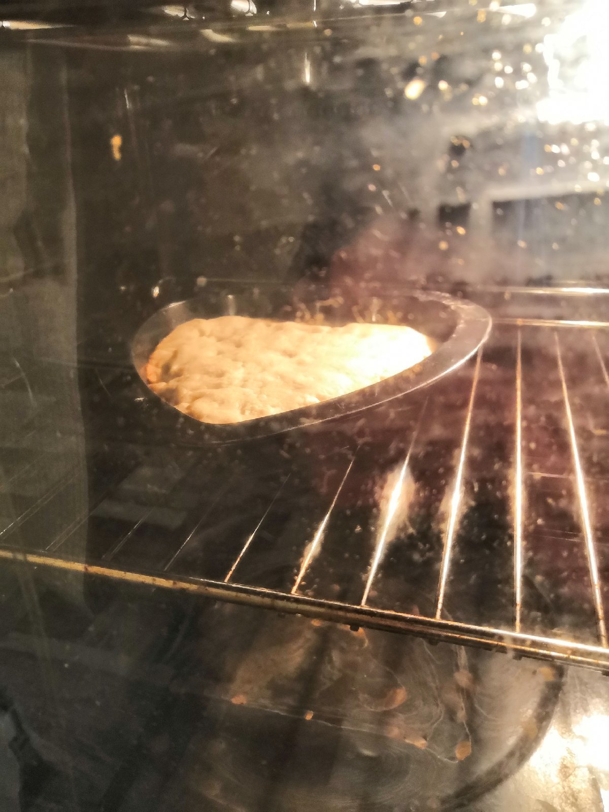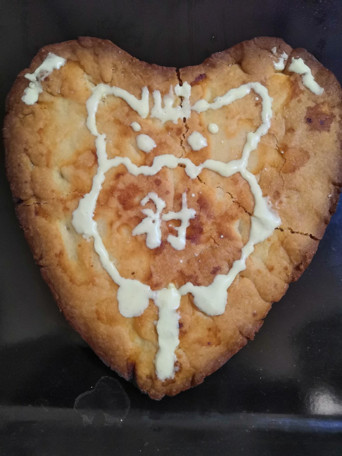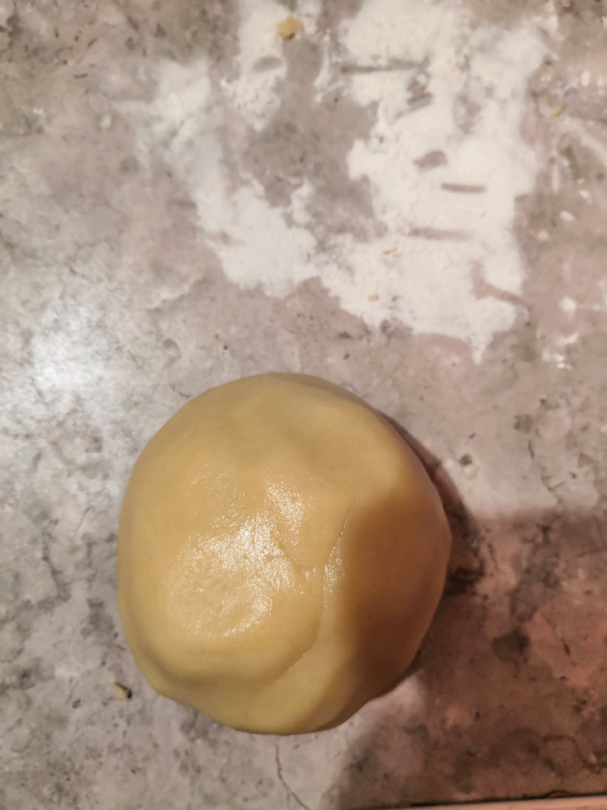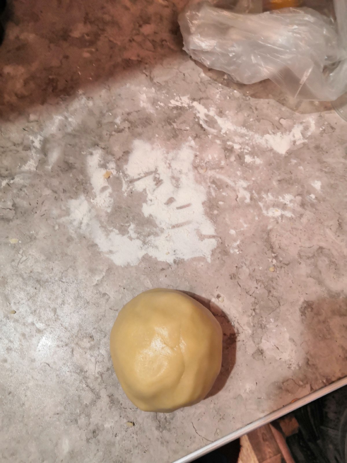 ставлю емкость на водяную баню где в кастрюле уже должна кипеть вода.и нагреваю до тех пор пока весь сахар не растворится.Добавляю 50 грамм желтков.Ввожу погашенную уксусом соду ,для этого возьму 3 грамма уксуса и 7 грамм соды.Массу необходимо перемешать.Далее нужно ждать 5 минут .В течении этого времени появится пена и масса увеличится в объеме. теперь снимаю емкость,чуть остужаю и ввожу 240 грамм просеянной муки. Замешиваю тесто. Посыпаю стол мукой,чтобы при раскатке оно не липло и делю тесто на одинаковые кусочки . Его необходимо раскатать достаточно тонко. Вырезаю коржи в виде сердца необходимого размера. Обязательно вилкой необходимо сделать дырочки,чтобы тесто не вздулось. Противень застелила пергаментной бумагой и положила тесто.Поставила в духовку на 7 минут при 180 градусах и пеку до золотисто-коричневого цвета