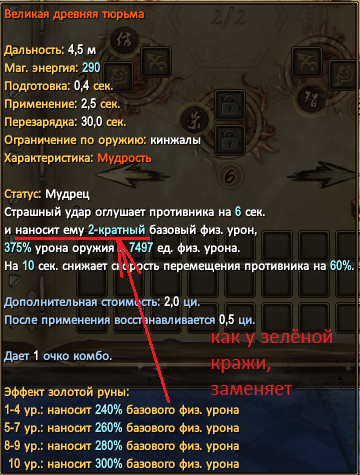 Кроме того, в том же PvE, раз уж на то пошло, ведь вся аргументация выстраивается с позиции PvE, мб для кого-то станет шоком, но сину желательно прожимать по кд ледяной + подлый удар, т.к. они имеют урон выше, чем у кражи. Необходимо контроллировать ситуацию по очкам комбо, и в случае просадки по темпу юзать зелёный разлом. Контроллировать чи, и в случае кд двух основных скиллов (укуса и равновесия) нажимать с риском из-за долгого применения аркан убийцы (+0.5 чи за 1.5 секунды), или даже бросок (+0.2чи за 1 секунду). Также бросок в том же 4-1 позволяет выбежав из круга отхилиться с добором чи. Ну а про то, что нужно по кд кидать отвод + расправу я напоминать не буду. И тюрьма, не знаю почему игнорируется. Урон выше чем у кражи, делает 4 удара. Да, 1.5 чи, но у сина чи хватает по кд прожимать все "двухчишные" скиллы.