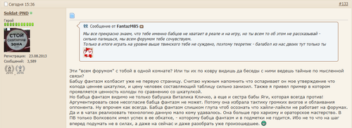 ЗЫ: Людям нужно не скрины показывать, а ссылки к началу диалога выкладывать, но там у тебя снова нос испачкан
