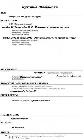 Резюме на должность заместителя директора Лисьего Штаба Города Оборотней