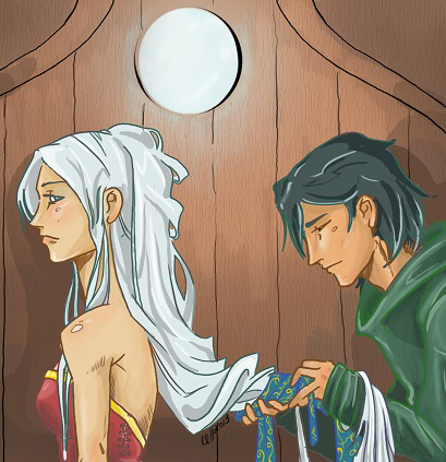 Мягкие бесцветные пряди волос Схиллы скользили меж его смуглых пальцев, как потоки белоснежного песка оазиса Шаайм-Сах. Пустынник поднимал взгляд, и видел немёртвую, подобную мраморному изваянию в своей неподвижности. Несмолкающий шёпот волн проникал в самую душу, становясь невыносимым.