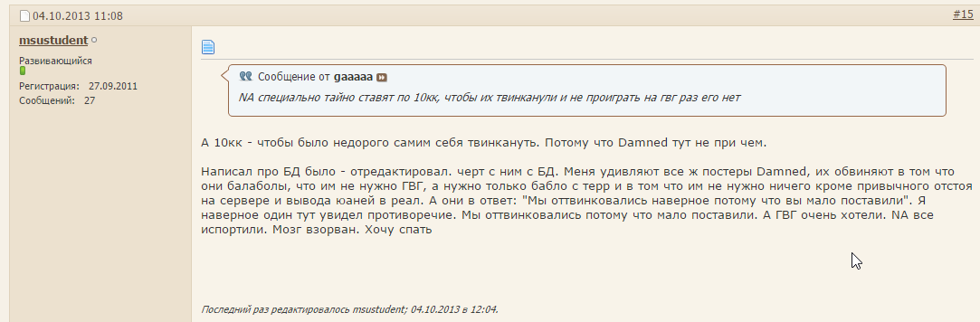 И да.. Форум Астры - печальное место. У нас на клановых сайтах больше флудили)