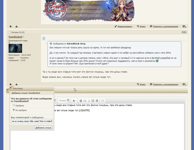 Ну по сути, ты тут часто, были от тебя хорошие посты и советы. Не понравились последние просто, зачем людей оскорблять? Как говорится можно по толерантнее писать свои посты. Не люблю слово " толерантность", но и когда других обсирают, позорят, тоже не люблю. Странно , что Дисари пропускает, это. Сова ушла в режим защиты.