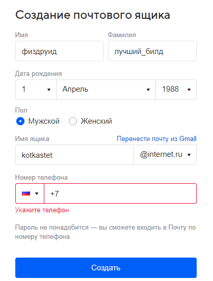 (с любым доменом требует телефон)