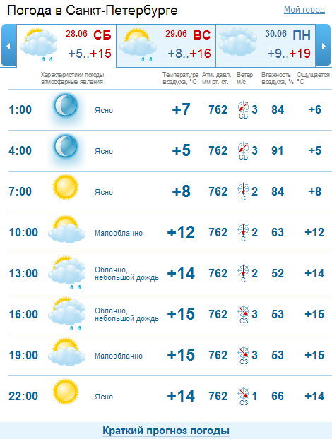 Gismeteo, СПб, 28 июня: