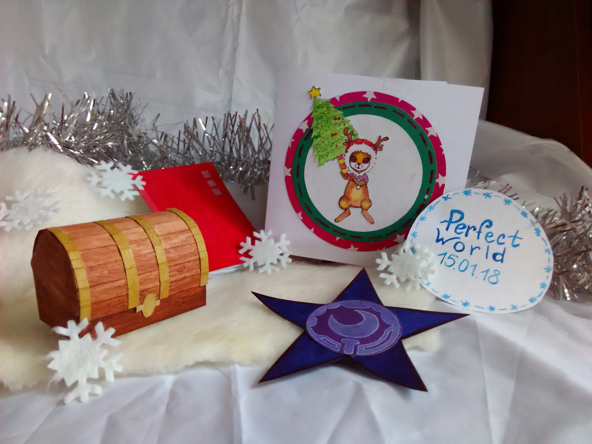 - Ну а красавице моей... - воин заботливо поставил на самое видное место коробки с симфонией жемчуга и чертежами статуи для дома. - Ну и по мелочи всякое в домик. - Под елкой появились еще один пакет с большим красным конвертом. - Вроде все.