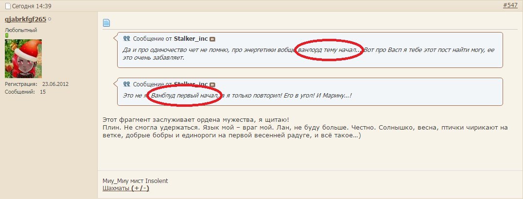А вообще давай завязывать. Смотри какое славное апрельское солнышко, а ты что-то препираться опять удумал. Сорок страниц бессмысленного флуда с пруфами, бубнами и цыганами (всё как ты любишь) я не осилю. Иди лучше прогуляйся: посиди на лавочке, подыши свежим воздухом, погрызи семечки, обсуди прохожих. Главное панамку не забудь надеть)Миу_Миу мист Insolent