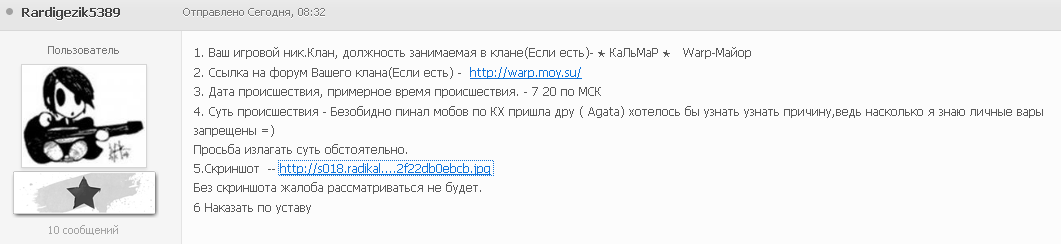 Ты бы лучше к Джасам загляни, там 2е довольно интересные жалобы, а относительно этой, так вообще клад для критика))