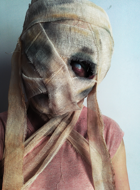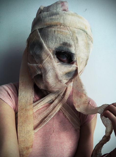 Первая маска вышла какой-то кровожадно-криповой... Пускай пойдёт в счёт атмосферы Хеллоуина, пожалуйста.
