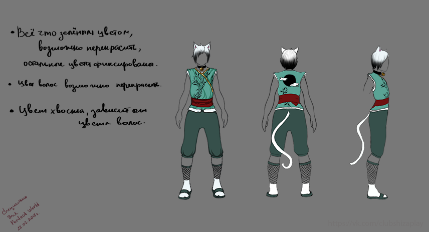 - Повседневные свободные штаны (Должны выглядеть как джинсы свободные со складками. Красится в темных тонах. Сбоку серебряная цепь)