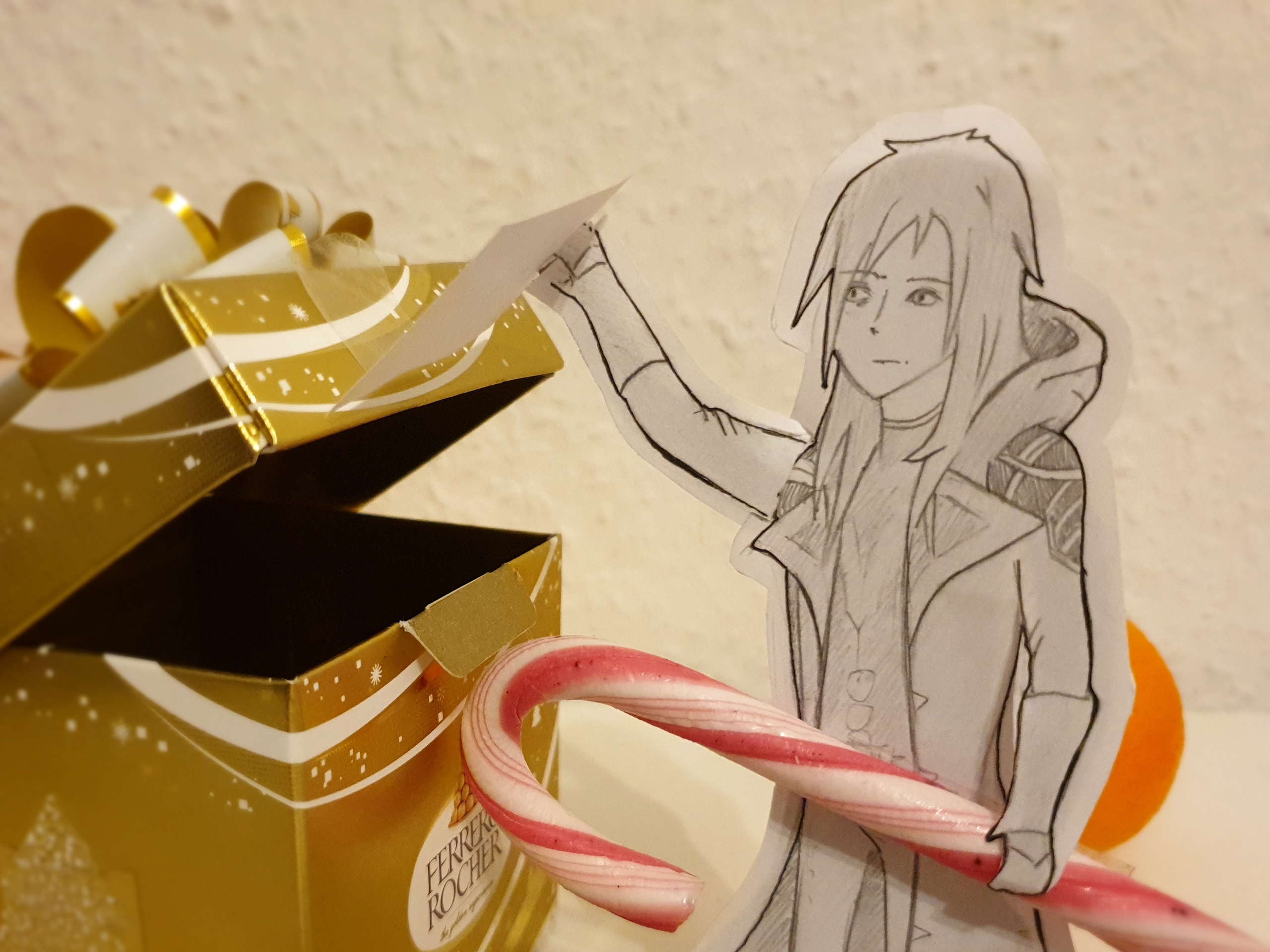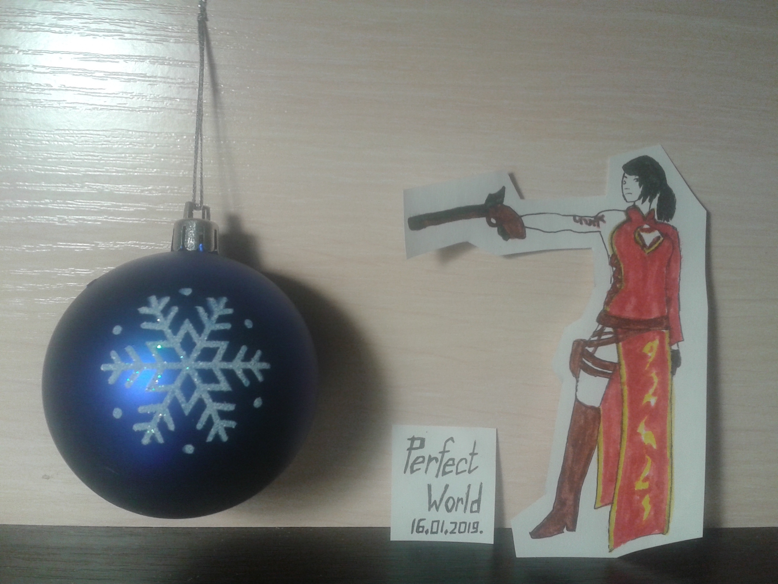 Рисовалось в Фотошопе и распечатывалось. Вместо моего отражения на шаре еще один старейшина
