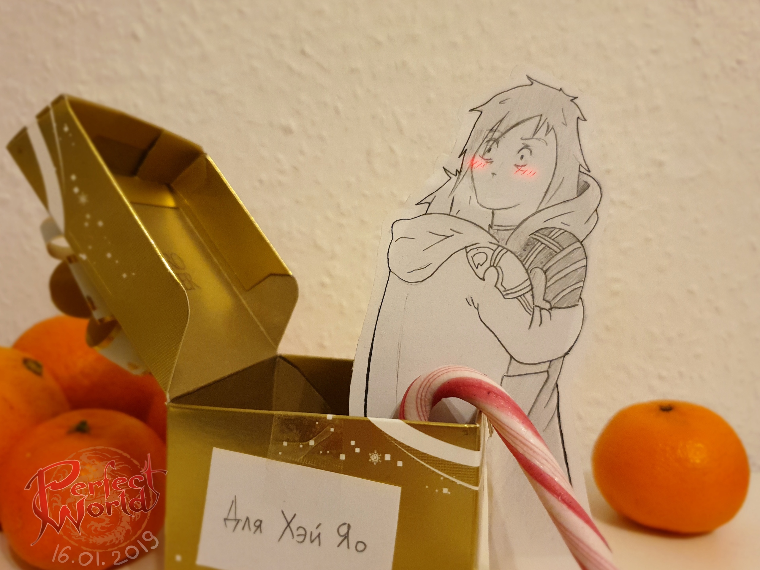 Она была очень напугана. Я постаралась её успокоить и выслушать. Каким-то образом она попала в реальный мир из межсерверного режима игры. о.О Только я любовалась ею на Битве Династий, а она уже передо мной. Когда я слушала её историю, заметила, что она продрогла. Конечно, попасть из тёплого мира в зимнюю Россию.
