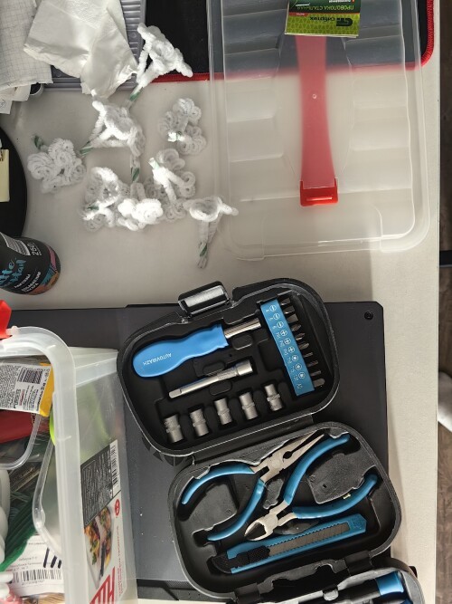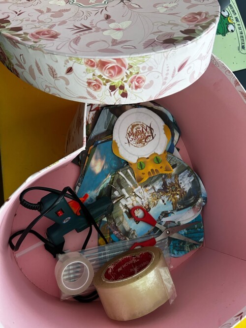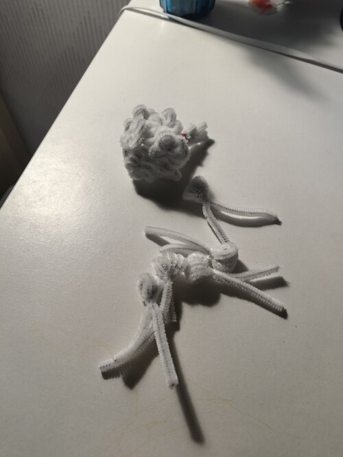 и капля безудержной фантазии. Кажется позже к этой вечеринке из хлама прибавилась фольга и упаковка от яиц...