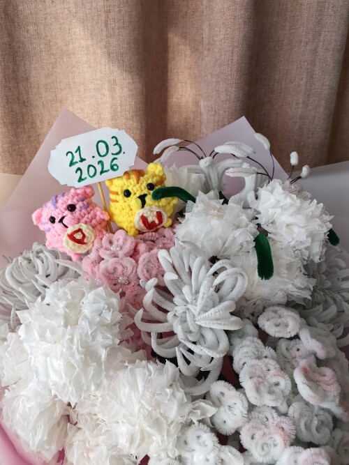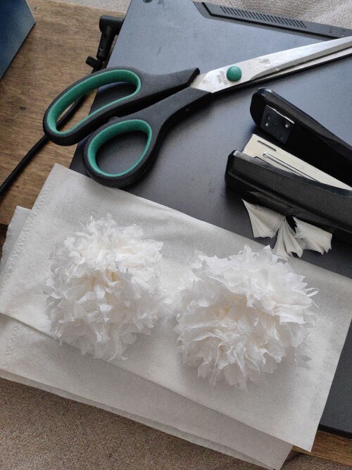 Букет из того, что нашлось под рукой: магия из салфеток и ваты.