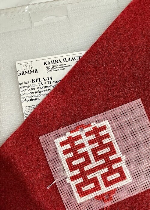 брелок вышит крестиком на специальной канве, сделано как брелок