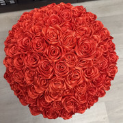 Букет собран на флористическом кирпиче, в шляпной коробке. Оформлен бумагой тишью.