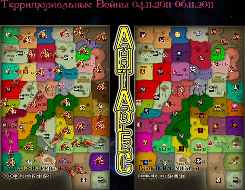 Офицерский состав пришедший с Таразеда(ArtOfWar) и дополненный активистами с Антареса смог повторить свой рекорд и даже превзойти его, захватив все территории Старого Света и Новые Земли, открытые водной расой.