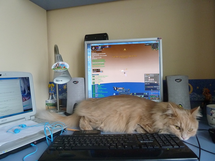 Когда я сижу за компьютером Тимка всегда рядом. Иногда заведет персонажа в такие кущи, что не найдешь).