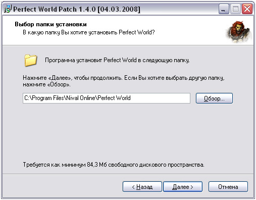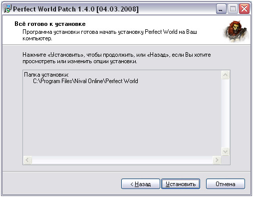 Если после этого все равно ругается - значит вы указали неверный путь для распаковки! В какой директории у вас игра установлена, посмотрите. Например: C:\Program Files\Nival Online\Perfect World\. По данному пути у вас должны быть видны директории config , element, launcher, patcher. Этот путь указываете при запуске патча 80 мегабайтного. Распространенная ошибка при установке патча: когда вас просят ввести каталог с игрой вы жмете обзор и по древу папок указываете папку Perfect World имеющий примерно такой путь: D:/Games/Nival Online/Perfect World, но если посмотреть в строку адреса после нажатия ок, то вы увидите D:/Games/Nival Online/Perfect World/Perfect World. Сотрите второе вхождение "Perfect World" из пути.