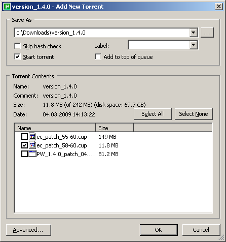1. Если вы уже скачали клиент 1.4.0.1.1. Скачайте файл 58-60 ec_patch_58-60.cup (12Mb) по одной из ссылок: