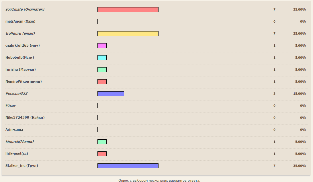 Проголосовал за себя, Мыльного и Бонни. Остальные вообще не понимаю, что делают в опросе.