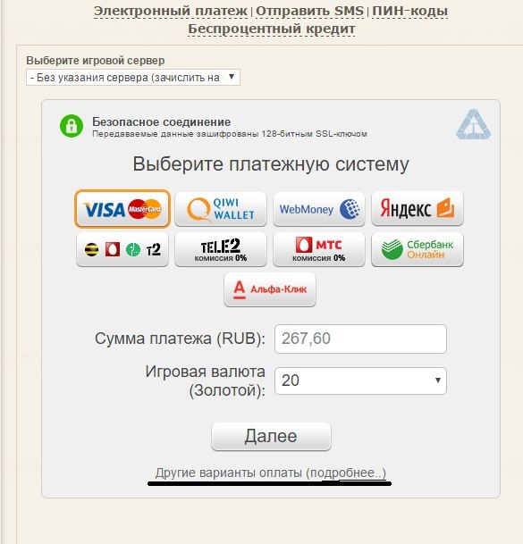 И перед нами появляется окно, через которое нам нужно пополнить счет золотых. Нам это тоже не нужно, нам важно только "Игровой аккаунт". Здесь указывается "истинный" никнейм аккаунта, на который можно пополнить счет.