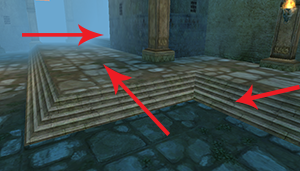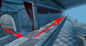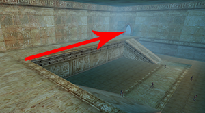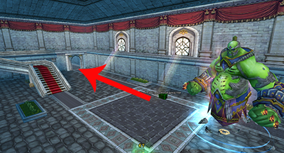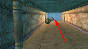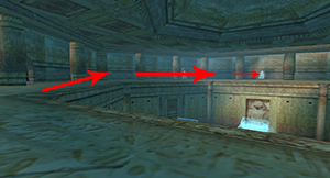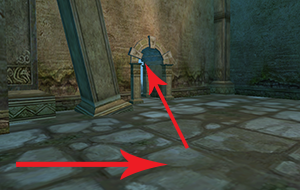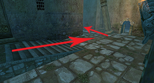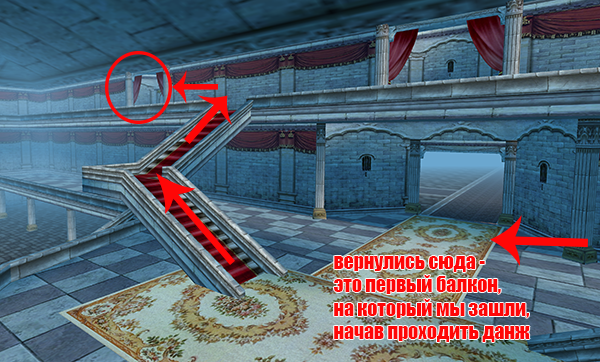 Если же вы били его там где он стоял, то после его смерти проходим в дверь в конце комнаты, убиваем монстров по пути, следуя дальше по коридору, проходим хлопающие ладоши и выходим на балкон этажом выше. Можно перепрыгнуть перила, а можно спуститься по лестнице, теперь нам нужна противоположная сторона данжа.