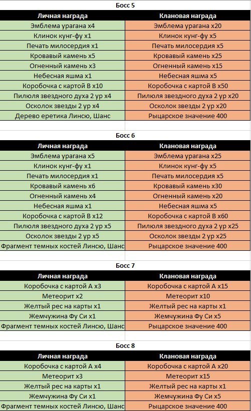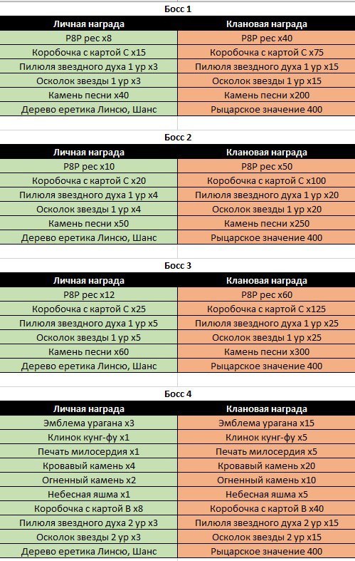 1 круг, 10 эвентов. В награду разные материалы в клан и индивидуальные коробки с разными вещами, а также шансом на деревья и фрагменты костей Линсю.